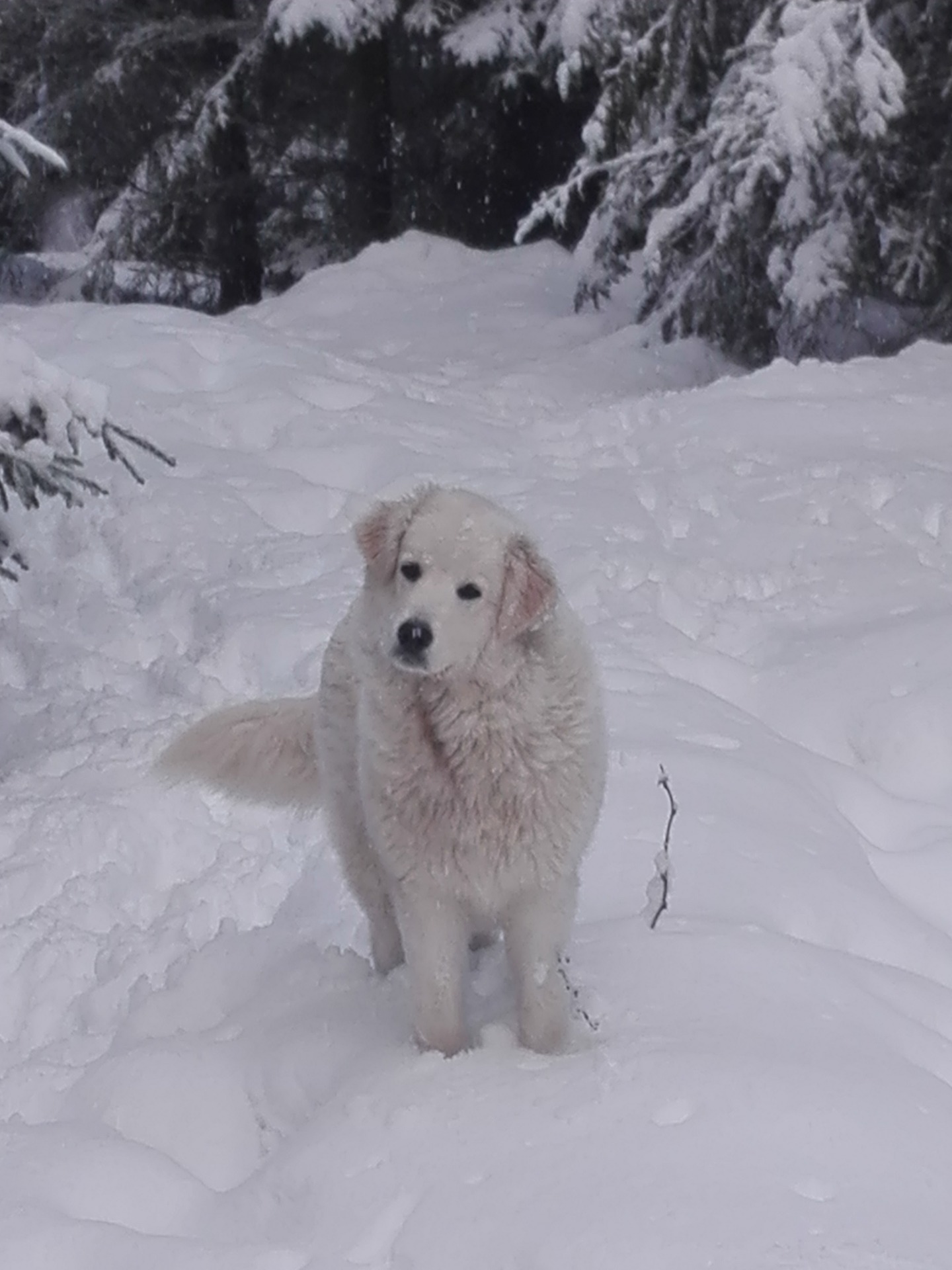 4 roky stará fenka Slovenského čuvače. Je to Slovenka jako já. Hrdá a paličatá :-) Ač je jí kus, je milá a přítulná, hravá. Máme jí moc rádi a myslím, že i ona nás.
